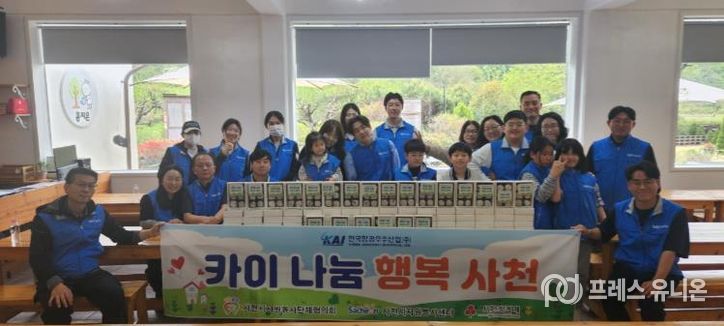 봉사자들이 체험 활동을 통해 제작한 결과물을 취약계층과 지역사회에 나누고 있는 ‘카이 나눔, 행복 사천’은 한국항공우주산업(주)에서 사업비를 지원하고 임직원 가족 봉사단이 활동에 참여하며, 경상남도사회복지공동모금회와 사천시자원봉사센터가 협력하여 진행하고 있다.