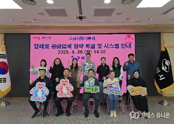 프레스유니온 강찬희 기자 | 구미시는 고향사랑기부제 활성화를 위해 답례품 공급업체로 선정된 12개 업체와 지난 4월 20일 협약을 체결했다.