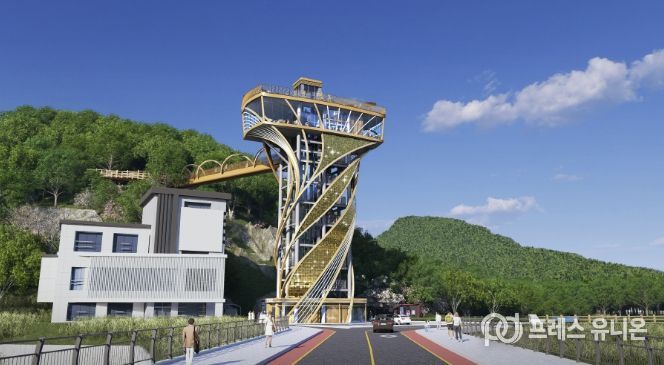 프레스유니온 강찬희 기자 | 문경시는 중부내륙고속철도 개통에 따른 관광 수요 증가에 대응하고, 문경새재·봉명산 출렁다리를 잇는 관광벨트 구축의 핵심 거점으로 추진 중인 ‘석화산 둘레길 조성사업’의 전망타워 디자인을 최종 확정했다고 밝혔다.