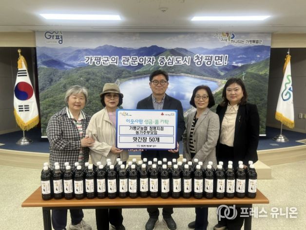 프레스유니온 김성길 기자 | 가평군농협 청평지점 농가주부모임이 20일 지역 내 어려운 이웃을 위해 직접 만든 맛간장 50개를 청평면에 기탁했다.