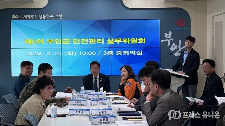 프레스유니온 강찬희 기자 | 부안군은 21일 부안군청 3층 중회의실에서 2026년 제2회 안전관리 실무위원회를 개최하고 오는 5월 2일 개최되는 제13회 부안마실축제 안전관리계획을 심의·의결했다고 밝혔다.