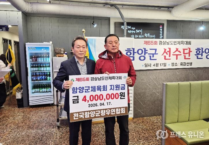 특히 이날 행사에서는 향우연합회에서 2026년 도민체육대회의 성공적인 개최와 함양군 체육 발전을 위해 발전 기금 400만 원을 전달하며, 고향을 향한 향우들의 변함없는 애정과 지지를 보냈다.
