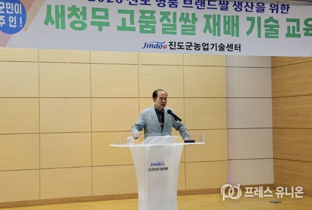프레스유니온 강찬희 기자 | 진도군은 ‘전남 10대 고품질 브랜드쌀’로 선정된 보배진미쌀의 품질을 유지하기 위해 계약재배 중인 농가를 대상으로 진도군농업기술센터 강당에서 재배 기술 교육을 진행했다.