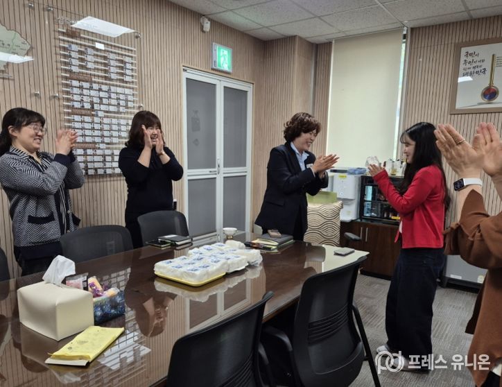 면장실에서 열린 이날 행사에는 전 직원이 참석하여 새로운 출발을 응원했다. 선배 공무원들은 정성껏 준비한 떡을 나누며 정규임용을 축하하는 한편, 청렴한 공직자의 자세와 책임감에 대해 깊이 있는 대화를 나누며 조직 내 청렴 의식을 고취했다.