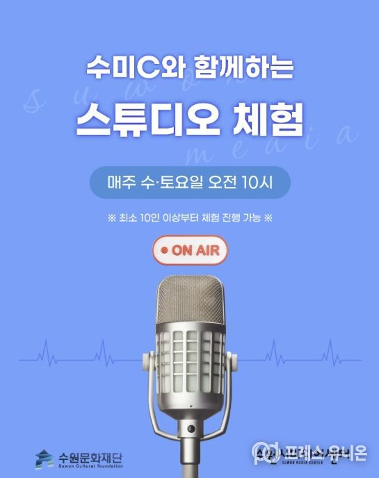 프레스유니온 김성길 기자 | 수원문화재단 수원시미디어센터는 수원시민의 미디어 접근권을 확대하고 미디어 전문 시설로서 그 활용도를 높이기 위해 오는 4월부터 ‘스튜디오 체험 프로그램’을 본격 운영한다.