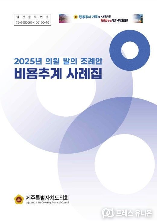 프레스유니온 강찬희 기자 | 제주특별자치도의회는 지방재정의 건전성을 도모하고 도민의 알 권리를 증진하기 위해 '2025년 비용추계 사례집'을 발간하고, 이를 누리집에 공개했다고 21일 밝혔다.