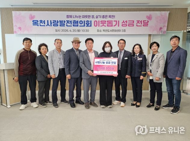 이종길 옥천면장은 “이번 성금은 옥천면 주민들이 함께 만들어낸 나눔의 소중한 결실”이라며 “어려운 이웃에게 큰 힘이 되길 바라며, 앞으로도 서로를 배려하고 함께하는 따뜻한 옥천면을 만들어가겠다”고 전했다.