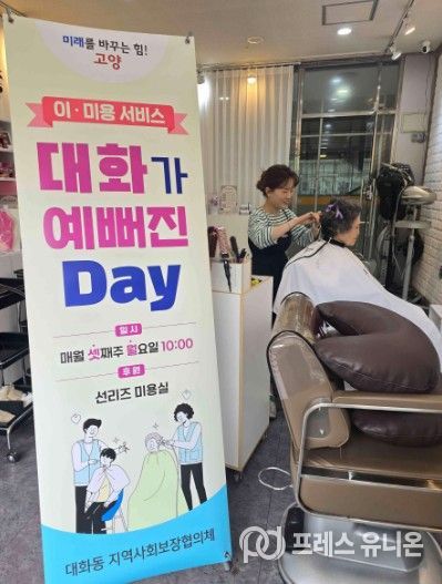 프레스유니온 김성길 기자 | 고양특례시 대화동은 마두동 소재의 ‘선리즈헤어’와 함께 지역 어르신들을 위한 이·미용 봉사활동을 지난 20일 시행했다.
