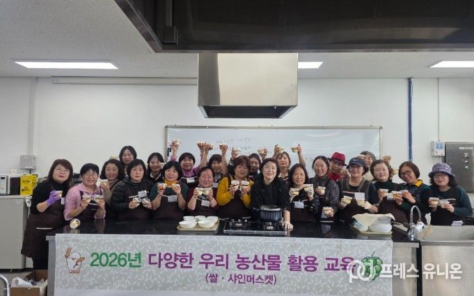 프레스유니온 김성길 기자 | 김포시 농업기술센터가 우리 쌀 소비 촉진과 지역 농산물 활용 확대를 위해 '2026년 다양한 우리 농산물(쌀·샤인머스캣) 활용 가공 기술 교육'을 운영했다.