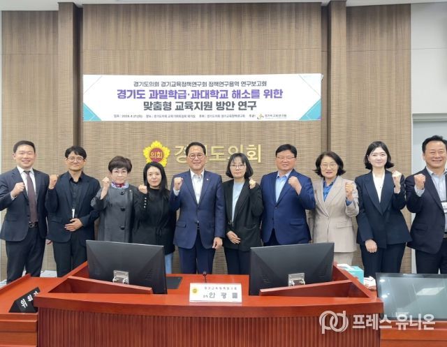 프레스유니온 강찬희 기자 | 경기도의회 교육기획위원회의 연구단체인 경기교육정책연구회(회장 안광률 위원장)는 21일(화) 교육기획위원회 회의실에서 ‘경기도 과밀학급·과대학교 해소를 위한 맞춤형 교육지원 방안 연구’를 주제로 연구용역 보고회를 개최했다.