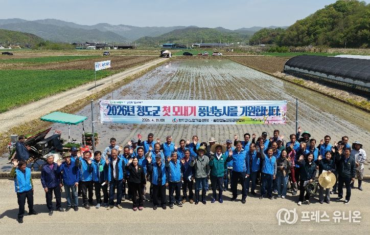 프레스유니온 강찬희 기자 | 청도군은 21일 이서면 금촌리 일원에서 (사)한국쌀전업농청도군연합회 주관으로 2026년 첫 모내기 행사를 개최하고 본격적인 영농철의 시작을 알렸다.