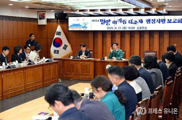 프레스유니온 강찬희 기자 | 경남 밀양시는 21일 시청 소회의실에서 오는 5월 7일부터 10일까지 나흘간 열리는 제68회 밀양아리랑대축제의 성공적인 개최를 위한 행정지원 보고회를 가졌다.