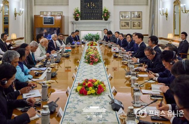 프레스유니온 강찬희 기자 | 청와대는 이재명 대통령의 인도 국빈 방문 성과와 관련 "우리 글로벌 사우스 외교의 본격적인 가동을 알리는 계기이자 14억 인구를 바탕으로 고속 성장 중인 인도와 새로운 협력 모멘텀을 창출하고 미래지향적이고 전략적인 분야로 양국 간 협력의 지평을 확대하는 계기가 됐다"고 평가했다.