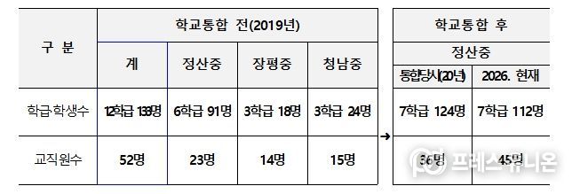 이번 방문은 정산중학교의 최신 교실을 비롯해 공작실, 가상현실(VR) 체험실 등 특별실과 기숙사 등 학생 생활시설을 둘러보는 일정으로 진행된다. 이어 현장 간담회를 통해 학교 통합 이후의 교육과정 운영 방식, 주요 성과 및 애로사항 등 여러 방면에서 현장의 이야기를 청취한다.