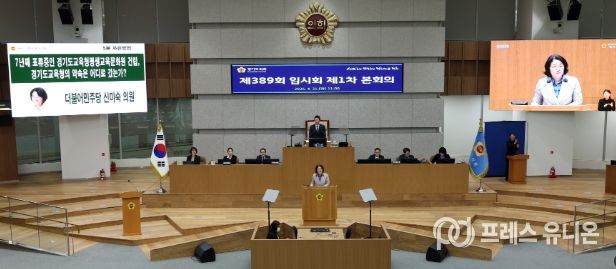 프레스유니온 강찬희 기자 | 경기도의회 교육기획위원회 신미숙 의원(더불어민주당, 화성4)은 21일, 제389회 임시회 제1차 본회의에서 진행한 5분 자유발언을 통해, 2019년부터 현재까지 표류중인 ‘경기도교육청평생교육문화원’ 건립 지연을 강하게 질타하며 경기도교육청의 책임감있는 결단을 촉구했다.