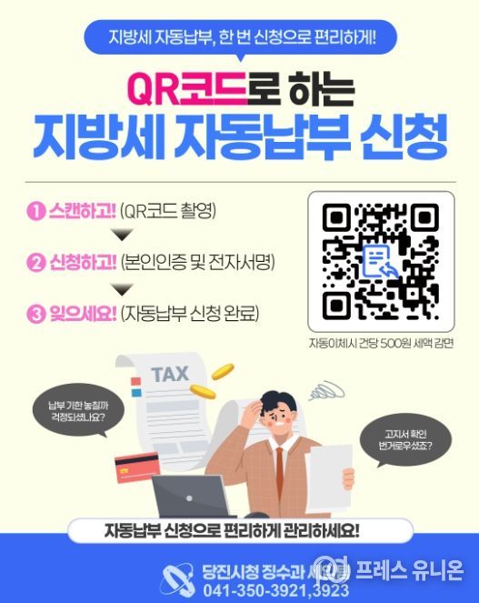 프레스유니온 강찬희 기자 | 당진시가 전국 지방자치단체 최초로 스마트폰을 활용한 ‘QR 자동납부 신청 시스템’을 본격 도입하며 디지털 세무 행정의 문턱을 대폭 낮췄다.