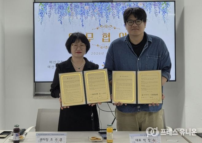 프레스유니온 강찬희 기자 | 예산군청소년복지재단 소속 예산군청소년상담복지센터는 지난 20일 오후 2시 센터 3층 회의실에서 내:일마을 협동조합과 학교 밖 청소년 지원 강화를 위한 업무협약을 체결했다.