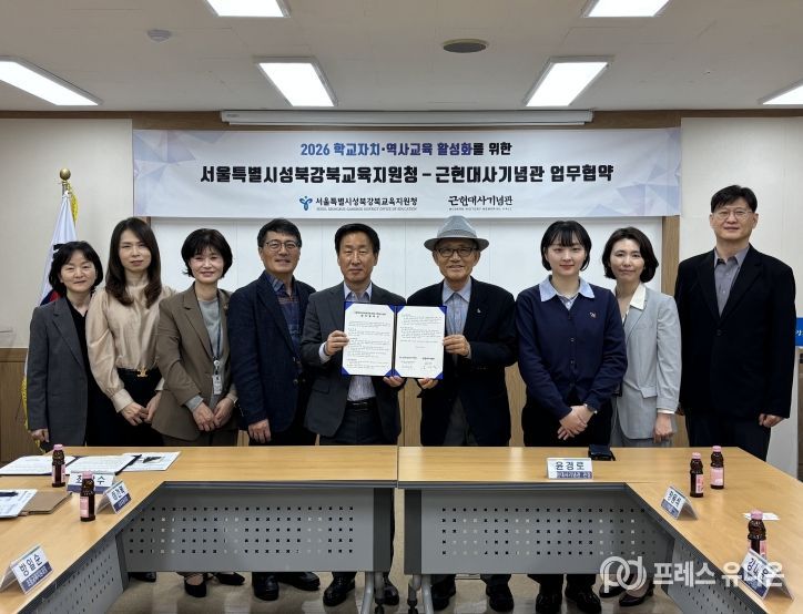 프레스유니온 강찬희 기자 | 서울 강북구가 (사)민족문제연구소에 위탁 운영 중인 근현대사기념관이 지난 16일 서울특별시성북강북교육지원청과 ‘체험형 교육 기회 확대 및 역사교육 활성화’를 위한 업무협약(MOU)을 체결했다고 밝혔다.