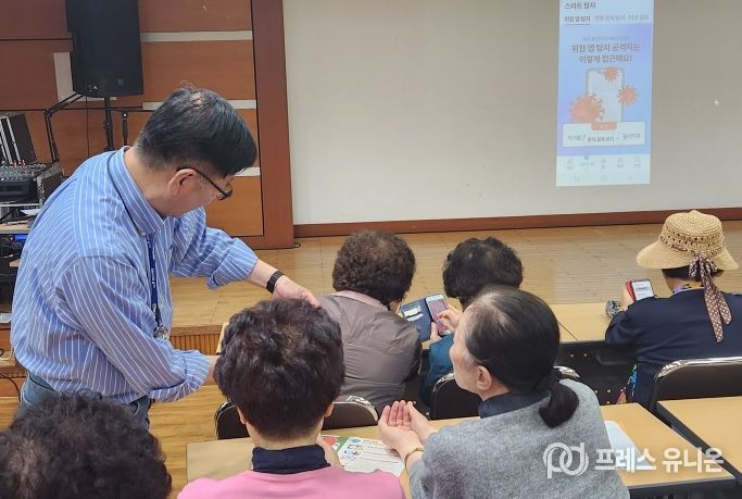 ‘스마트폰 보안관’은 성남 지역 노인기관 75개소를 찾아가 스마트폰 보안점검을 실시해 악성앱을 차단하고 보이스피싱 예방을 위한 인식 개선 활동을 하는 경기도 시범 사업이다.
