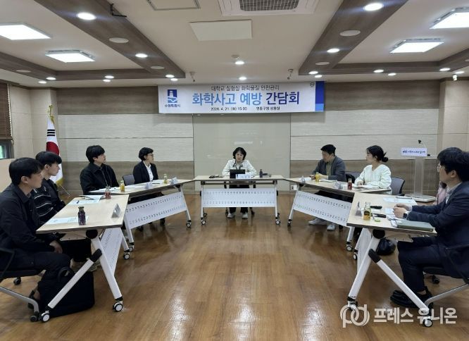 프레스유니온 김성길 기자 | 수원특례시는 21일 영통구청 상황실에서 관내 대학교 안전관리자들과 ‘연구실험실 화학사고 예방 간담회’를 열고, 사고 예방·대응 방안을 논의했다.