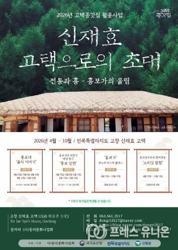 프레스유니온 강찬희 기자 | 고창군이 (사)동리문화사업회와 국가유산청 고택·종갓집 활용사업으로 ‘신재효 고택으로의 초대’를 고창 신재효 고택과 판소리공원 일대에서 오는 25일부터 10월까지 본격 운영한다고 밝혔다.
