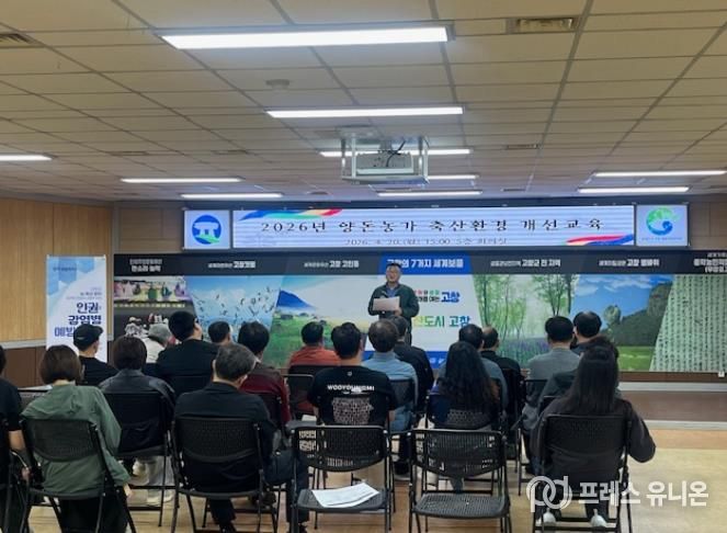 프레스유니온 강찬희 기자 | 고창군은 4월 20일 고창군청에서 관내 양돈농가를 대상으로 깨끗한 축산환경 조성을 위한 교육을 실시했다고 밝혔다.