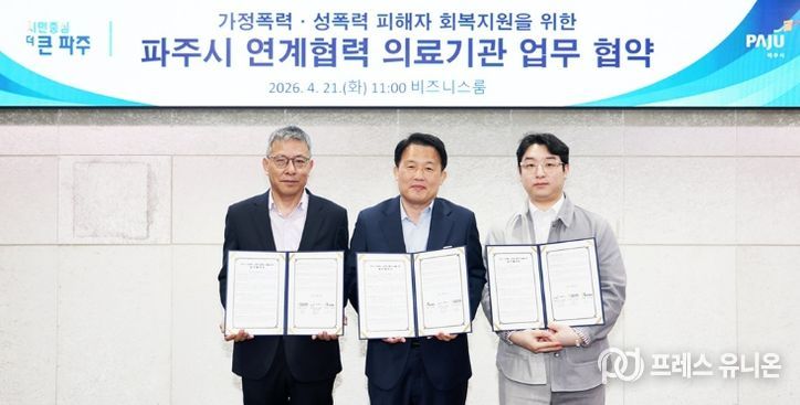 프레스유니온 김성길 기자 | 파주시는 성폭력·가정폭력 피해자의 신속한 치료와 회복 지원을 위해 지역 대표 의료기관과의 협력체계를 강화한다.