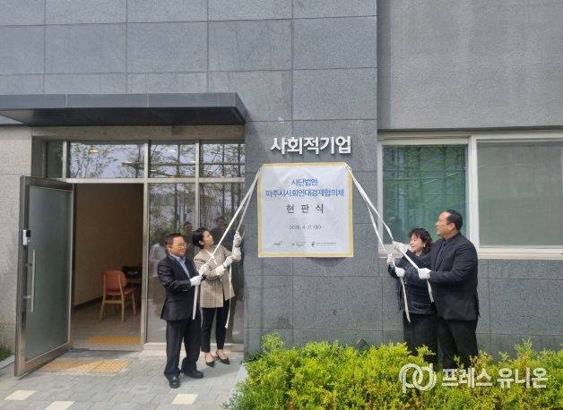 프레스유니온 김성길 기자 | 파주시는 지난 21일, ㈔파주시사회연대경제협의체가 업무거점 공간을 마련하고 본격적인 운영을 알리는 현판식을 개최했다고 밝혔다.
