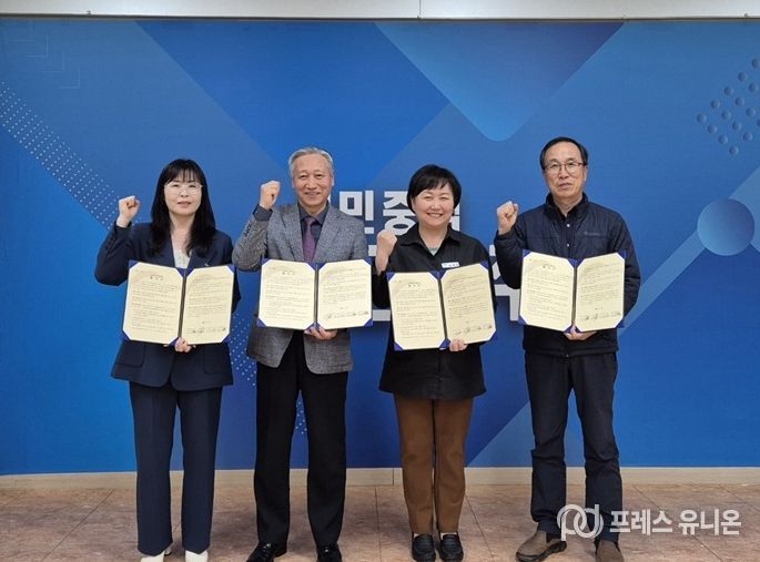 프레스유니온 김성길 기자 | 파주시 교하동은 지난 21일, 교하동 행정복지센터에서 ㈜밀알(대표 김면식)·파주시 운정종합사회복지관·교하동 지역사회보장협의체와 함께 지역 내 의료 취약계층 대상 가정용 의료 침대 지원을 위한 ‘교하사랑 나눔가게’업무협약을 체결했다.