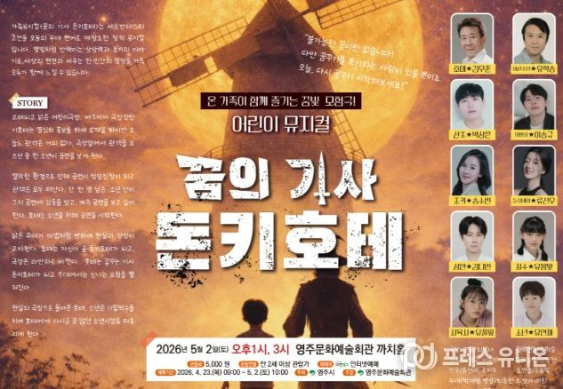 프레스유니온 강찬희 기자 | 영주시는 오는 5월 2일 오후 1시와 오후 3시, 두 차례에 걸쳐 영주문화예술회관 까치홀에서 어린이 뮤지컬 ‘돈키호테’를 선보인다.