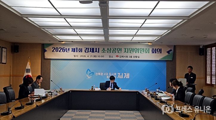 프레스유니온 강찬희 기자 | 김제시는 지난 21일 2층 상황실에서 ‘2026 김제시 소상공인 지원위원회’를 개최하고, 지역 소상공인의 경영 안정을 위한 실질적인 지원방안을 확정했다고 밝혔다.