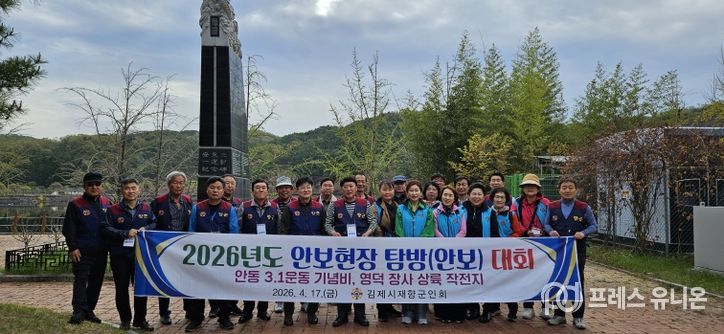 프레스유니온 강찬희 기자 | 김제시는 김제시재향군인회(회장 전진석)와 안동시재향군인회(회장 김재년)가 지난 16~17일 이틀간 안동시 일원에서 “2026년도 국민화합 호 영남 친선교류 결의대회”를 개최하고, 지역 간 화합과 국가안보 의지를 다졌다고 밝혔다.