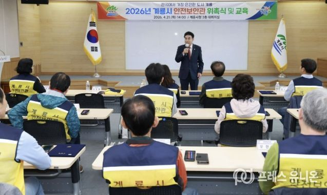 프레스유니온 강찬희 기자 | 충남 계룡시는 21일 시청 대회의실에서 ‘2026년 계룡시 안전보안관 위촉식’을 열고 안전보안관 27명을 위촉했다.