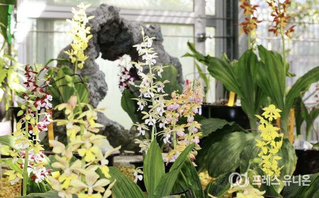 생태공원 자생란관에 전시된 자생식물 새우란은 꽃잎마다 번지는 다채로운 색감으로 공간을 물들이며 관람객에게 생동감 넘치는 봄을 느끼게 한다.