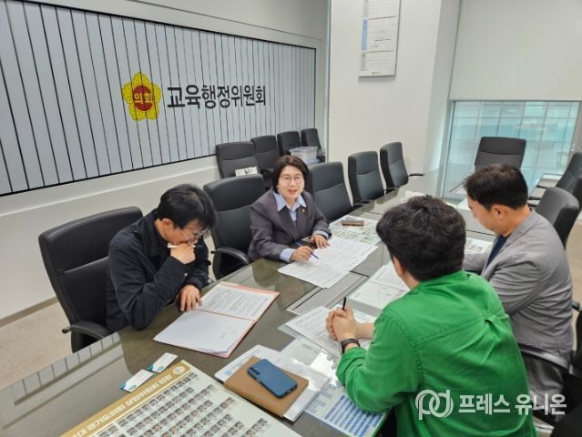 프레스유니온 강찬희 기자 | 경기도의회 교육행정위원회 이서영 도의원(국민의힘, 비례)은 21일 교육행정위원회 회의실에서 경기도청 지역정책과와 정담회를 갖고, 국토교통부가 추진 중인 ‘과밀억제권역 내 공업지역 대체지정 제도’의 추진 현황을 점검하는 한편, 성남시 야탑밸리 개발과 연계한 도촌·야탑역(가칭) 신설 필요성을 강조했다.