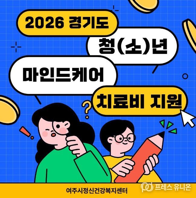 프레스유니온 김성길 기자 | 여주시정신건강복지센터는 2026년도 '청(소)년 마인드케어 정신건강 외래치료비 지원사업'을 본격 시행한다고 밝혔다.