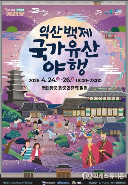 프레스유니온 강찬희 기자 | 매년 관람객에게 잊지 못할 특별한 밤을 선사하는 '2026 익산백제 국가유산 야행'이 익산 백제왕궁(왕궁리유적) 일원에서 오는 24~26일 3일간 펼쳐진다.