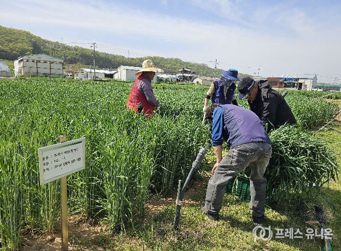 프레스유니온 강찬희 기자 | 군위군은 조사료 생산 기반 강화를 위한 현장 실증시험을 과학영농실증시범포에서 체계적으로 추진하고 있으며, 현재 수확 시기에 맞춰 조사료 성분 분석을 병행 실시하고 있다고 밝혔다.