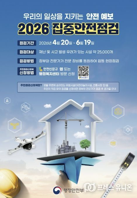 프레스유니온 김성길 기자 | 구리시는 시민 안전 확보를 위해 4월 20일부터 6월 19일까지 두 달간 ‘2026년 집중 안전 점검’을 본격 추진한다고 밝혔다.