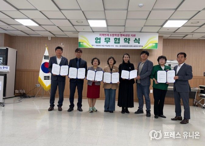프레스유니온 김성길 기자 | 이천시 중리동은 21일 중리동행정복지센터에서 지역사회와 학교가 함께하는‘지역연계 초등학생 행복성장 지원 협약식’을 개최하고, 지역 아동의 건강한 성장과 교육복지 향상을 위한 협력체계를 구축했다.