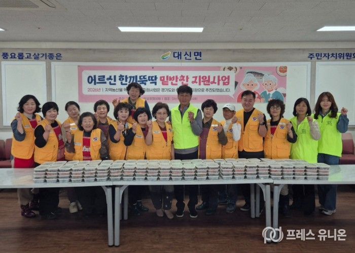 프레스유니온 김성길 기자 | 여주시 대신면 지역사회보장협의체는 대신면 적십자회와 함께 지난 21일 대신면 문화복지센터에서 관내 소외된 어르신을 위해 2026년 ‘어르신 한끼뚝딱 밑반찬 지원사업’을 진행했다.