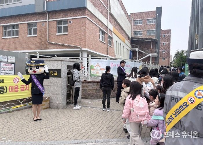 프레스유니온 김성길 기자 | 수원특례시가 22일 영통구 망포초등학교 앞에서 안전한 통학 환경 조성을 위한 ‘민·관·경 합동 교통안전 캠페인’을 펼쳤다.