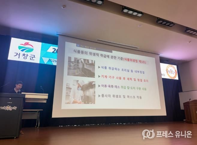 프레스유니온 강찬희 기자 | 거창군은 지난 20일부터 21일까지 이틀간 농업기술센터 미래농업복합교육관에서 일반음식점 영업주를 대상으로 ‘2026년 일반음식점 기존영업주 위생교육’을 실시했다.