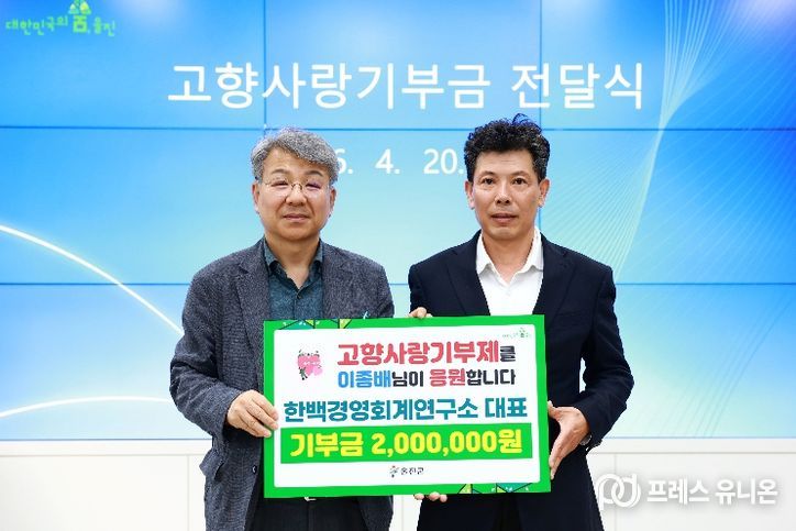 프레스유니온 강찬희 기자 | 한백경영회계연구소 이종배 대표가 지난 4월 20일 울진군에 고향사랑기부금 200만 원을 전달했다.