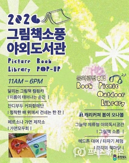 프레스유니온 김성길 기자 | 충북도가 4월 25일부터 26일까지 이틀간 도청 문화광장 815에서 온 가족이 함께 즐기는 ‘충북야외도서관 '그림책 소풍'’ 행사를 개최한다.