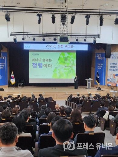프레스유니온 김성길 기자 | 화성특례시는 22일 시청 대강당에서 고위공직자를 대상으로 ‘2026년 청렴 워크숍’을 개최했다. 이번 워크숍은 조직을 이끄는 고위공직자의 청렴 리더십을 강화하고, 반부패 관련 법령에 대한 이해를 높여 공정하고 투명한 공직문화를 정착시키기 위해 마련됐다.