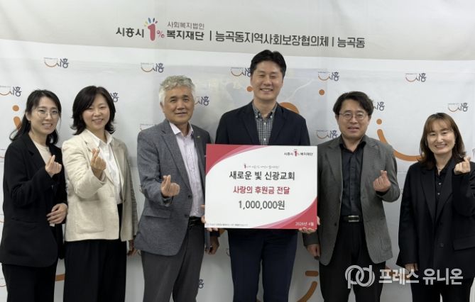프레스유니온 김성길 기자 | 시흥시 능곡동은 지난 4월 22일 새로운 빛 신광교회로부터 지역사회 취약계층 지원을 위한 후원금 100만 원을 시흥시1%복지재단을 통해 전달받았다.