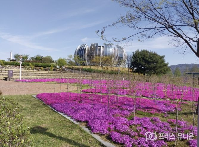 프레스유니온 강찬희 기자 | 상주시민의 힐링 휴식처인 중덕지 자연생태공원에 봄 향기를 가득 머금은 꽃잔디가 만개해 눈부신 보라색 빛을 발산하고 있다.