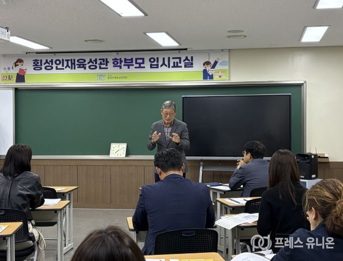 프레스유니온 강찬희 기자 | (재)횡성인재육성장학회는 지난 22일 횡성인재육성관에서 학부모의 입시 이해도를 높이고 자녀의 성공적인 대입 준비를 돕기 위한 ‘2026 학부모 입시교실’을 개최했다.