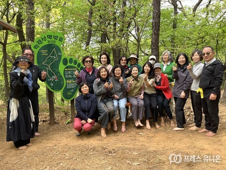 프레스유니온 김성길 기자 | 파주시는 4월 1일부터 7월 8일까지 금촌동 학령산 산림공원 맨발걷기길에서 시민의 신체적·정서적 건강 증진을 위한 ‘맨발체조걷기 프로그램’을 운영한다.